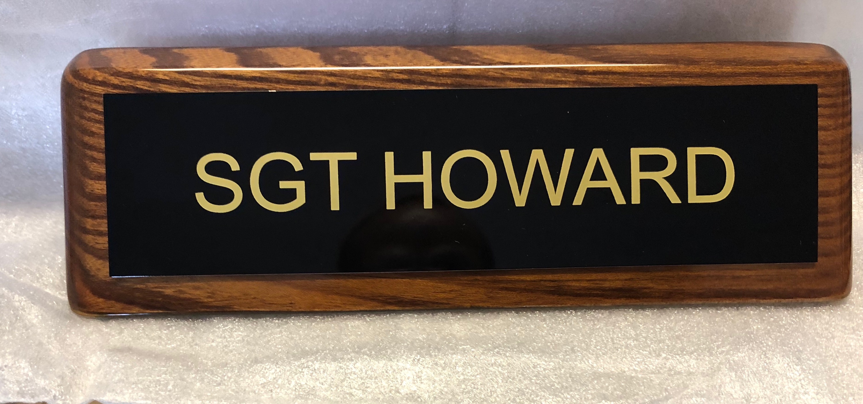 Walnut with Piano finish. Customized name plate can be sublimation, or laser engraved on silver, black, or gold plate.